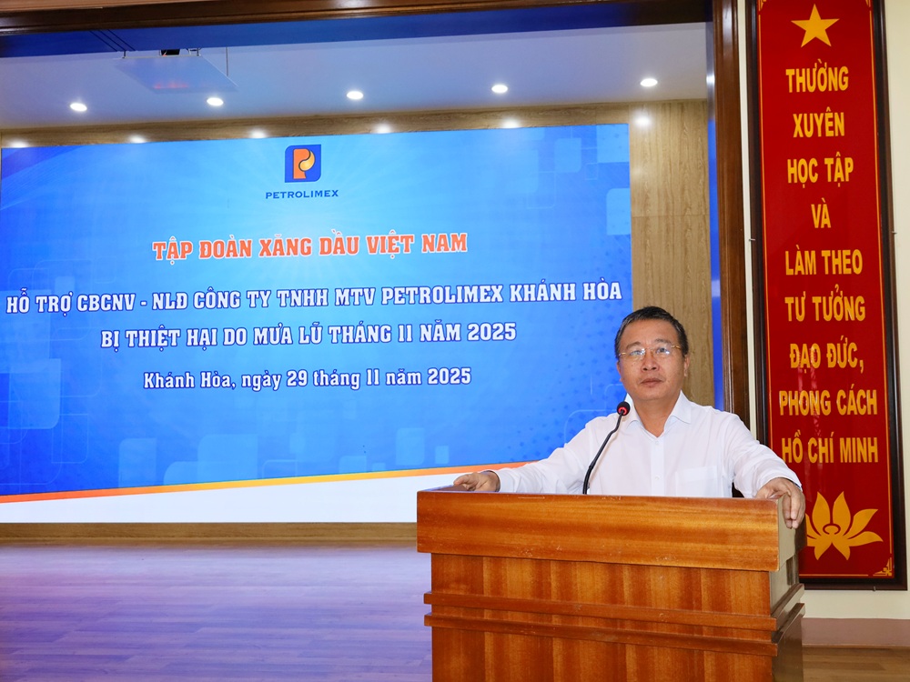 Khánh Hòa, sáng ngày 29.11.2025, thừa ủy quyền của Tập đoàn Xăng dầu Việt Nam (Petrolimex/Tập đoàn), Công ty TNHH MTV Petrolimex Khánh Hòa đã tổ chức buổi Lễ trao tặng nguồn hỗ trợ 260 triệu đồng đến người lao động có hoàn cảnh khó khăn, bị thiệt hại do mưa lũ trong tháng 11/2025 vừa qua. Đây là một trong những hoạt động kịp thời, thể hiện sự quan tâm sâu sắc của Tập đoàn đối với đời sống cán bộ, công nhân viên tại các đơn vị khu vực miền Trung – nơi thường xuyên chịu tác động nặng nề của thiên tai.