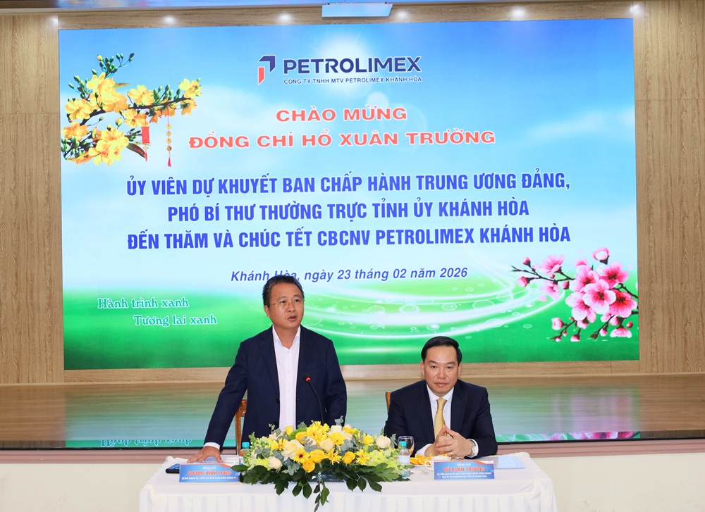 Phát biểu tại buổi thăm, đồng chí Hồ Xuân Trường chúc mừng năm mới tập thể lãnh đạo, người lao động Petrolimex Khánh Hòa; ghi nhận nỗ lực bảo đảm kinh doanh an toàn, hiệu quả và giữ vững an ninh năng lượng trên địa bàn. Đồng chí đề nghị Công ty tiếp tục phát huy tinh thần đoàn kết, nâng cao hiệu quả hoạt động và đồng hành cùng địa phương trong phát triển kinh tế xã hội.